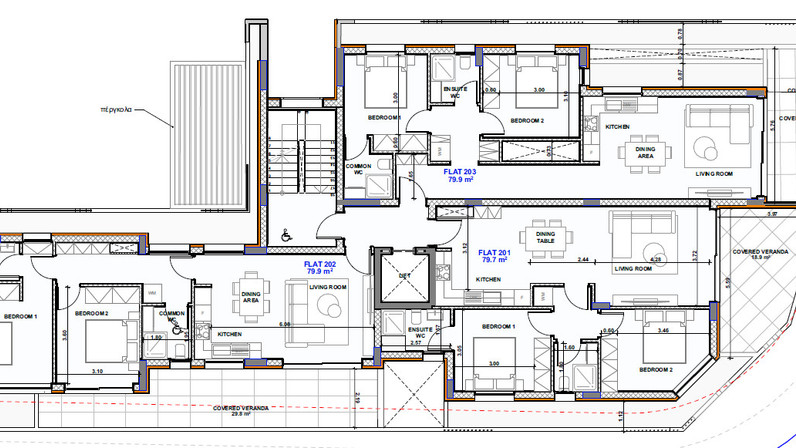 This modern six-story residential building sets a new standard for contemporary living in Larnaca, combining elegant design with energy efficiency rated at category A. Comprising 18 beautifully designed two-bedroom, two-bathroom apartments, each unit offers spacious and modern living areas that emphasize comfort, functionality, and style.