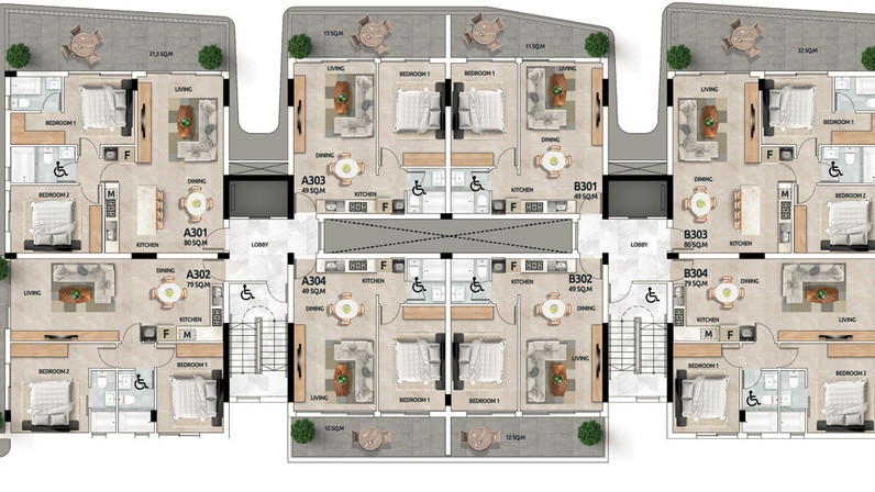 High-end materials and premium finishes reflect a commitment to excellence, ensuring that each home offers a sanctuary of tranquility and luxury. Many residences boast breathtaking sea views from their private balconies, offering residents a serene and inspiring backdrop to daily life. The project includes a diverse selection of one-bedroom and two-bedroom apartments, as well as exclusive two- and three-bedroom penthouses, each featuring private roof gardens. The three-bedroom penthouses elevate luxury even further with their own private rooftop pools, providing unmatched privacy and spectacular panoramic views of the Mediterranean.